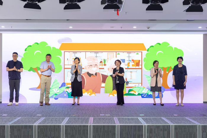 最后,由市人大社會建設委員會副主任委員張婷婷,區(qū)人大常委會卜健副主任,市住建委城市管理處處長周翔宇,上海市裝飾裝修行業(yè)協(xié)會秘書長沙峰,市人大代表、市人大社會建設委員會委員、上海市金源方程律師事務所主任金纓,市人大代表、上海開放大學經(jīng)濟管理學院院長、教授孫慧共同啟動上海市“長者友好”家居環(huán)境改造設計大賽。