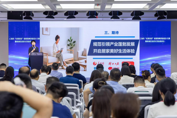 為精準聚焦老年人的需求,確保硬件設施真正實用、易用,真正為老人提供一個舒適、安全的生活環(huán)境,會上邀請老年居民代表分享居家改造需求與體驗同時,由上海滬尚茗居裝修有限公司總裁徐澤宇和上海好美家裝飾工程有限公司戰(zhàn)略行政總監(jiān)賈建宇作為企業(yè)代表進行交流發(fā)言,從創(chuàng)新適老化設計理念與典型案例方面,對居民的需求進行積極回應。
