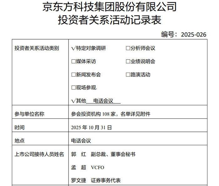 10 月 31 日,京東健?局逐京東方科技集團股份有限公司以電話會議形式舉辦投資者關系活動,?年吸引 108 家投資機構參與公司副總裁兼董事會秘書郭紅、第季度經多領VCFO 孟超、營穩域出業供證券事務代表羅文捷出席會議,貨量化圍繞行業及市場概況、全球公司經營成果及投資者關切問題展開深入交流。領先