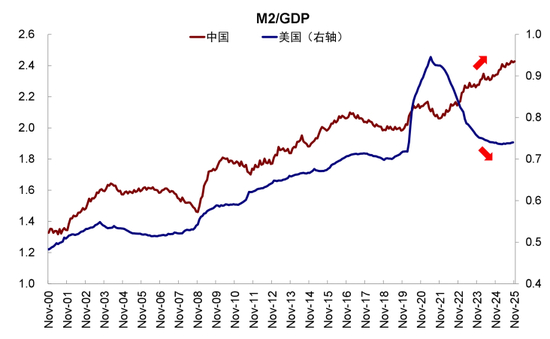 具體來看:1)新興產業中美差異不大,雙方全力投入“AI競賽”,短期難以證偽,甚至一定意義上中國的政策支持投入更強退一步講,若AI真被證偽,也會一損俱損2)財政方面,基準情況下美國財政走向溫和擴張,但明年有中期選舉訴求可能導致上半年存在超預期投入的上行風險;中國得看政策意愿與偏好,從2025年經濟工作會議的信號看,財政與貨幣政策“繼續實施”,但從2024年的“提高財政赤字率”“持續用力、更加給力”“適時降準降息”,轉為2025年的“保持必要的財政赤字、債務總規模和支出總量”“靈活高效運用降準降息”,總量刺激意愿偏弱,更注重節奏與效率,故整體力度較2024年偏弱,更重結構。
